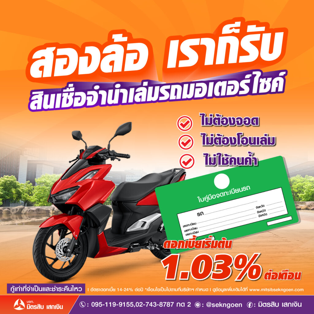 บริษัท มิตรสิบ เสกเงิน จำกัด ให้บริการทางด้านสินเชื่อประเภท รถมอเตอร์ไซค์ รถยนต์ หรือจำนำบ้านและโฉนดที่ดิน อีกทั้งพร้อมให้บริการมากกว่า 30 สาขา ดอกเบี้ยที่เป็นธรรม เพื่อสร้างโอกาสให้แก่ลูกค้าทุกท่าน