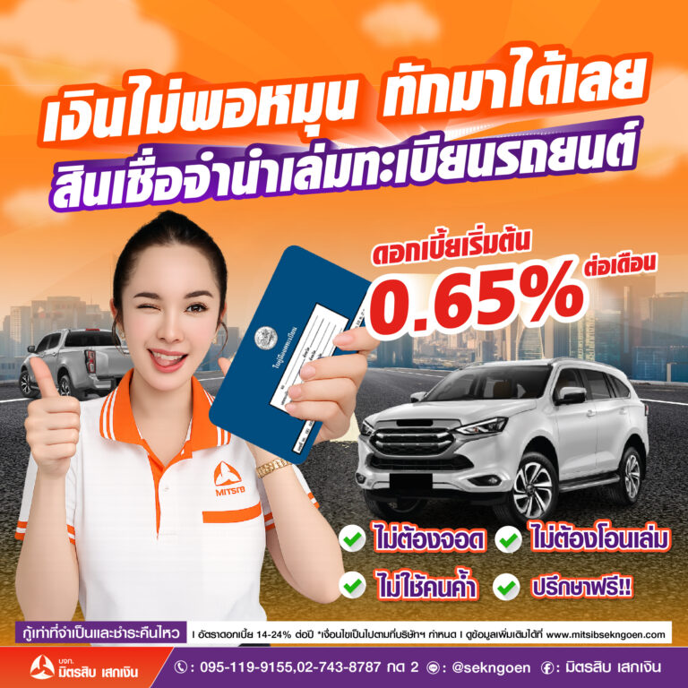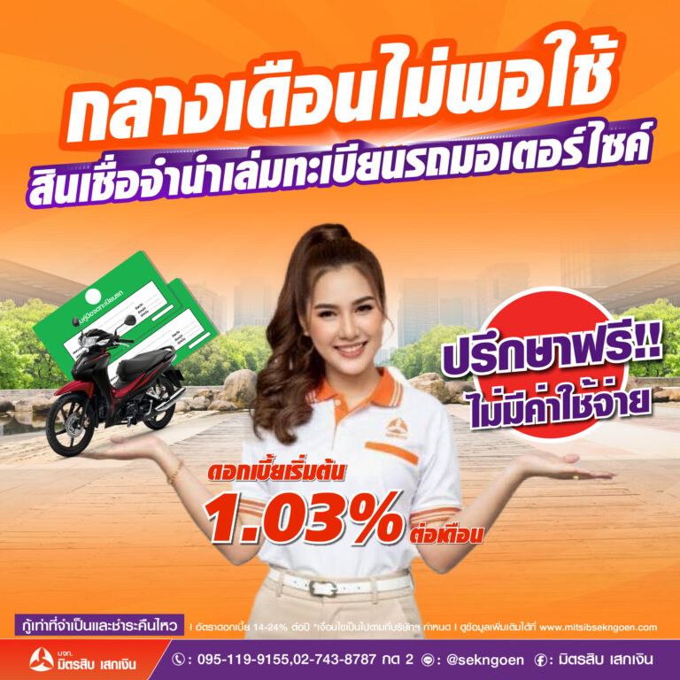 โปรโมชั่น โปรโมชั่นประจำเดือนนี้ จำนำเล่มทะเบียนรถจักรยานยนต์ คลิกเลย จำนำเล่มทะเบียนรถยนต์ คลิกเลย จำนำโฉนดที่ดิน บ้าน คอนโด คลิกเลย